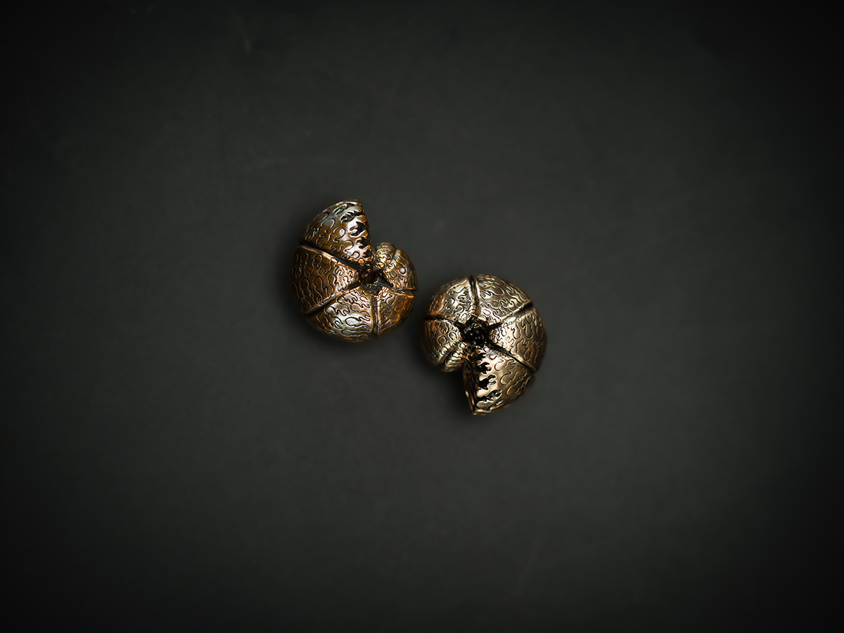The Mexican Spherical Ammonite Object is inspired by naturally occurring spherical ammonite fossils, characterized by their tightly coiled internal structure and compact geometry. This piece interprets the fossil form into a solid bronze object, emphasizing balance, density, and inward movement.