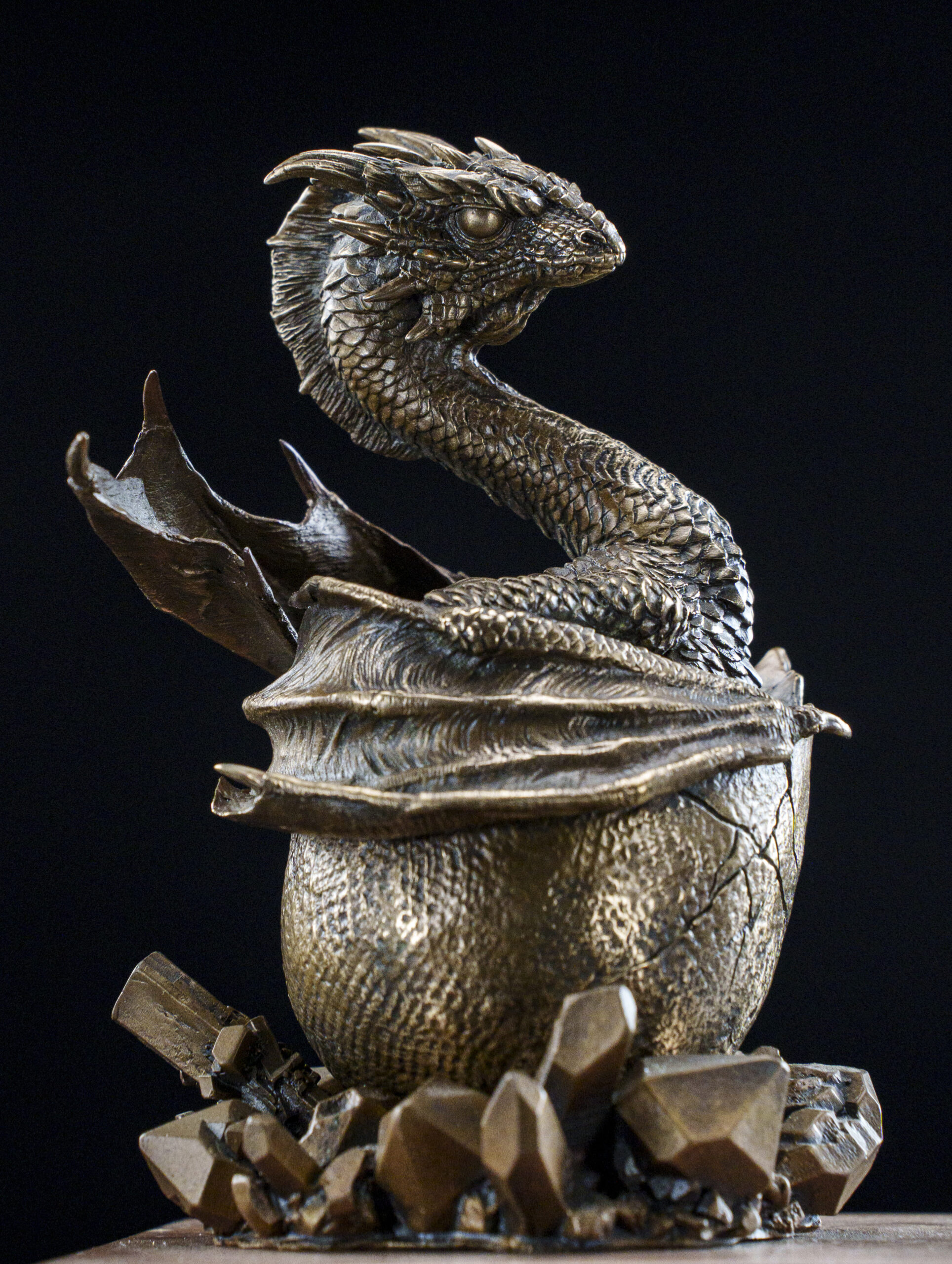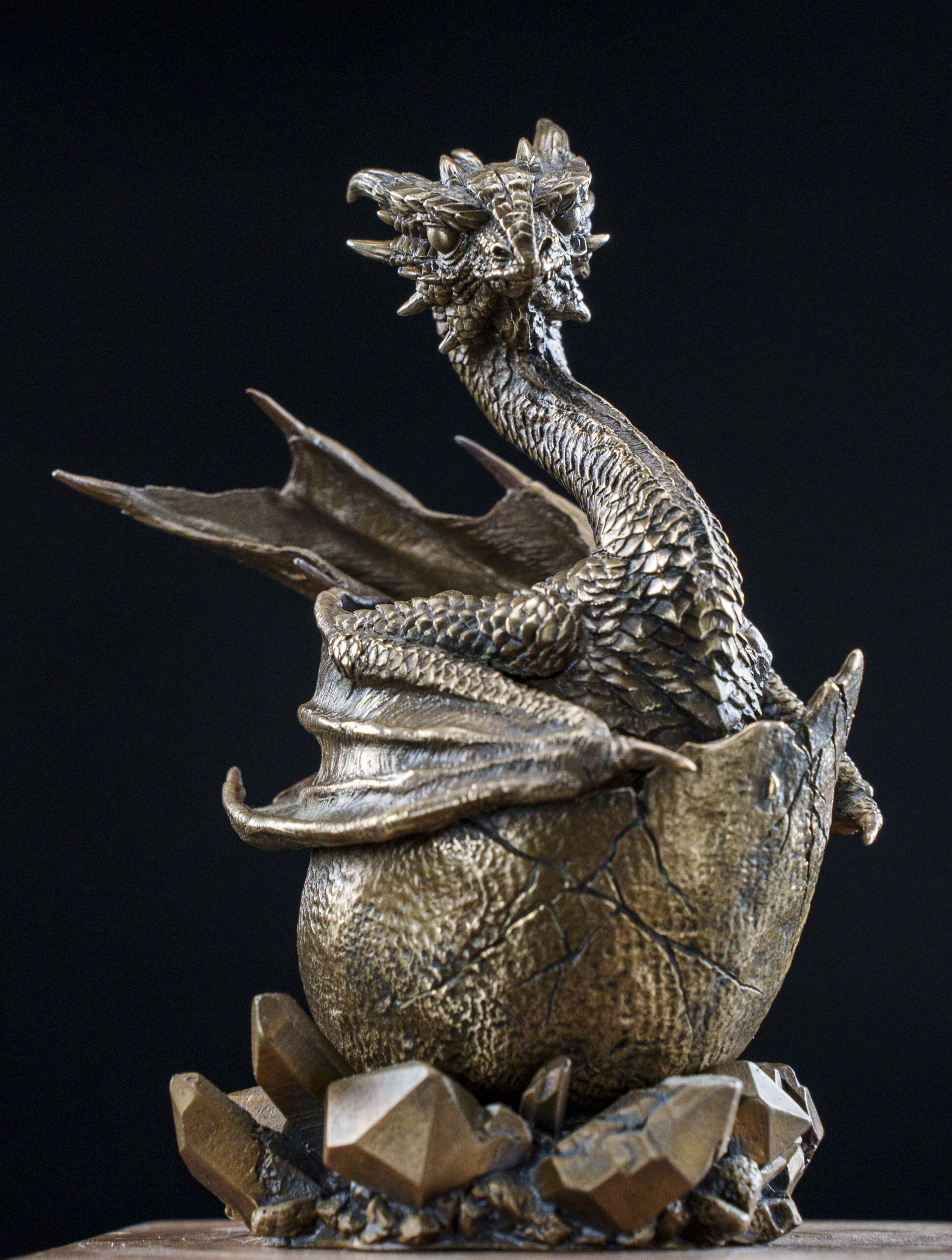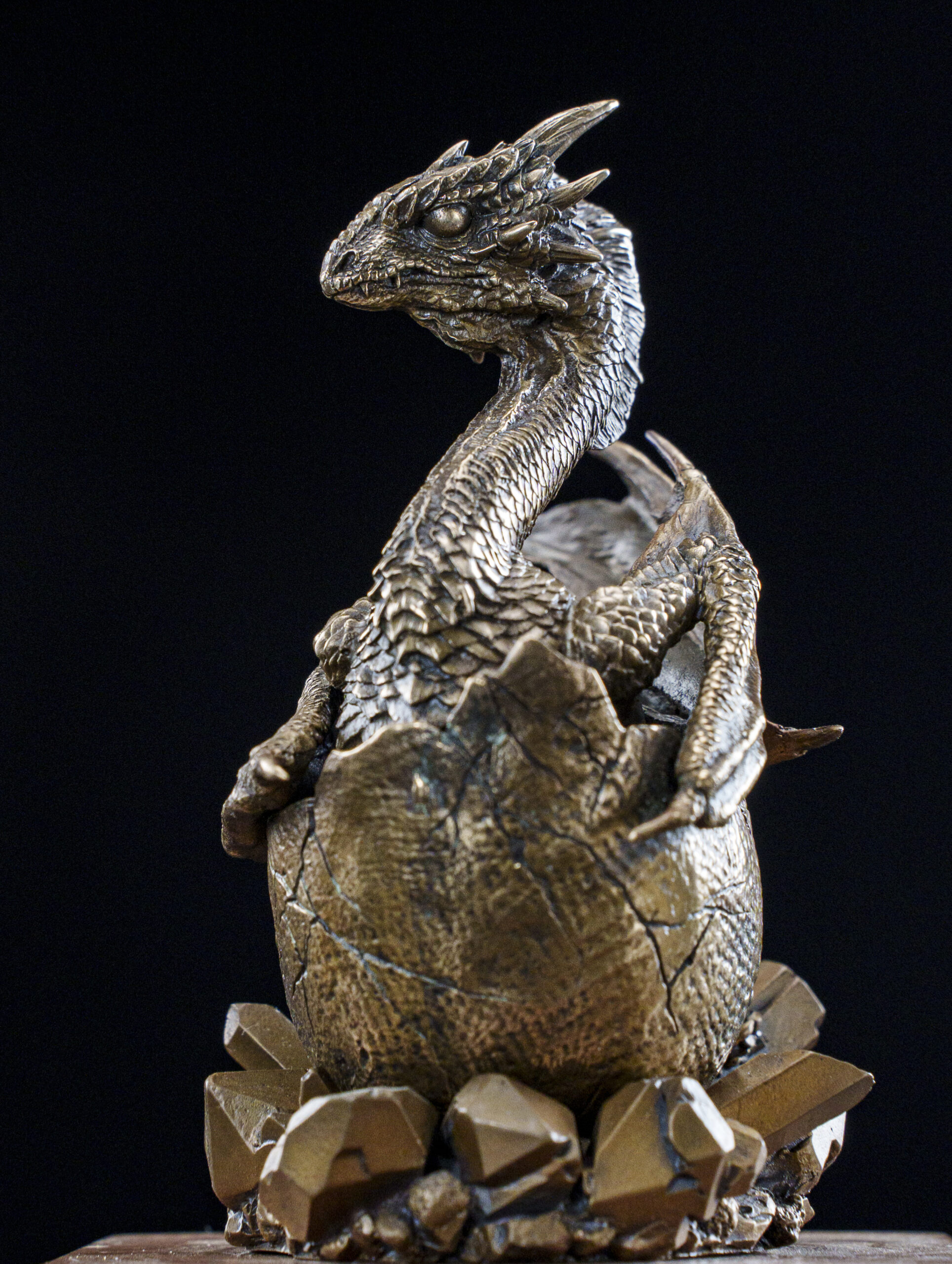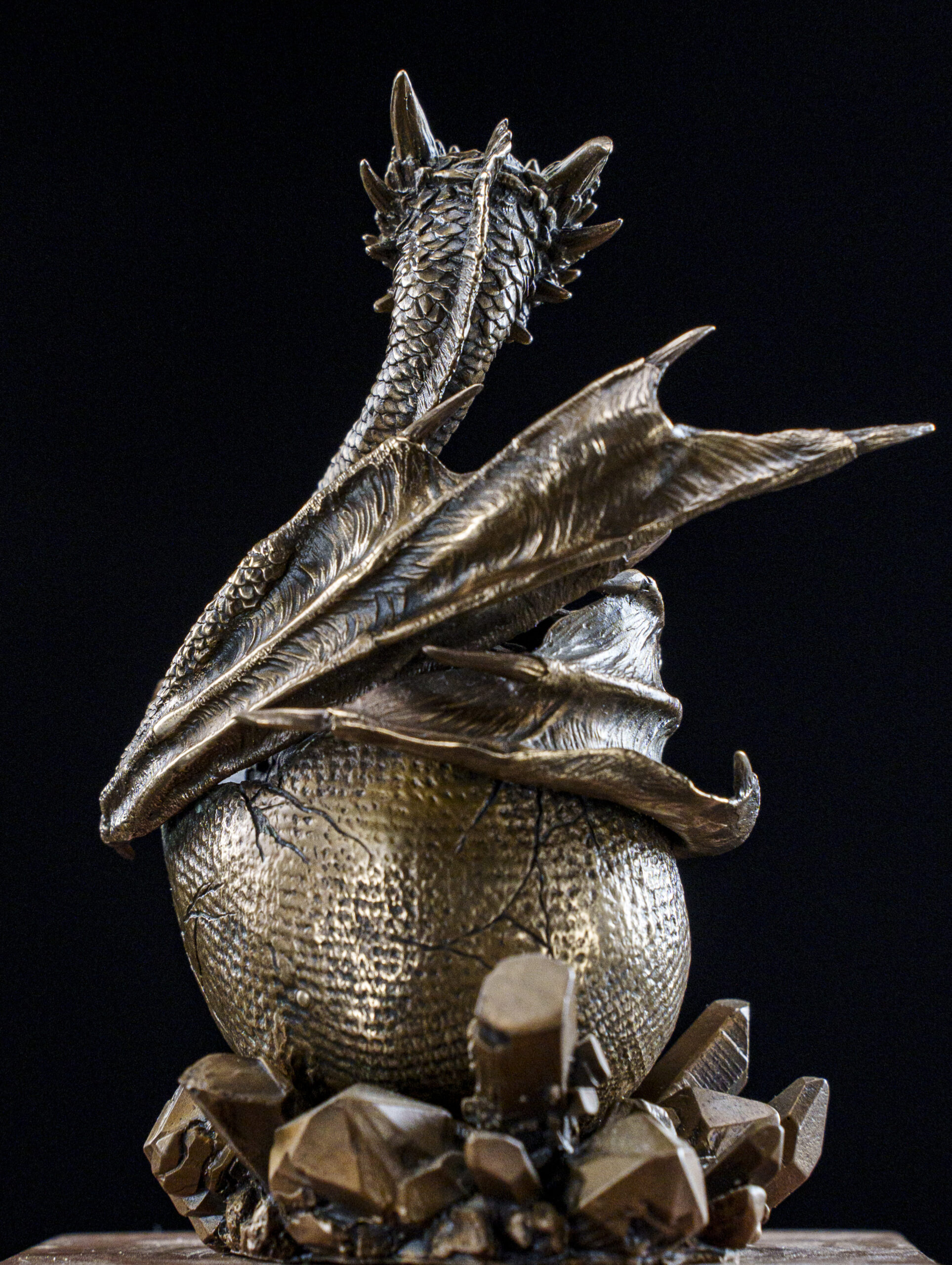 The Loyalty Hatchling Dragon represents a newly born dragon rising from its shell, symbolizing courage, awakening, and steadfast character. The upward curve of the neck and partially opened wings create a sense of restrained strength, capturing the moment between emergence and ascent.